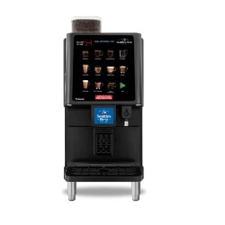 At the simple push of a button, this bean-to-cup brewer freshly grinds whole beans, then consistently brews and dispenses a variety of fresh, high-quality and perfectly crafted specialty hot beverages with minimal waste. Plumbed water. Decaf Options Available.